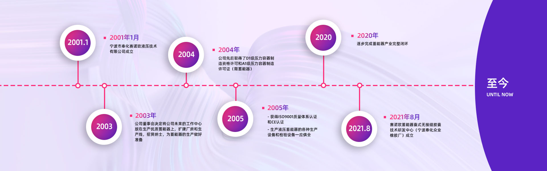 寧波市奉化賽諾歐液壓技術(shù)有限公司始建于2001年,是國家定點專業(yè)生產(chǎn)蓄能器、無縫高壓氣瓶的制造企業(yè),已有15年以上的生產(chǎn)歷史。公司具有A1級壓力容器制造許可證、iso9001國際質(zhì)量體系認證及歐盟CE認證證書。